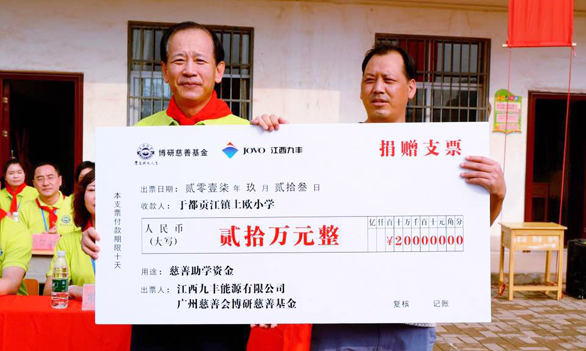 On September 23, 2017, By Education Fund Charity learning assistance activity initiated by JOVO was undertaken in Yudu, Jiangxi. Through By Education Fund, Jiangxi JOVO Energy Co., Ltd. donated RMB 200,000 to Shangou Primary School for the purpose of infrastructure construction and improvement, and gifted the school supplies to students on the spot.